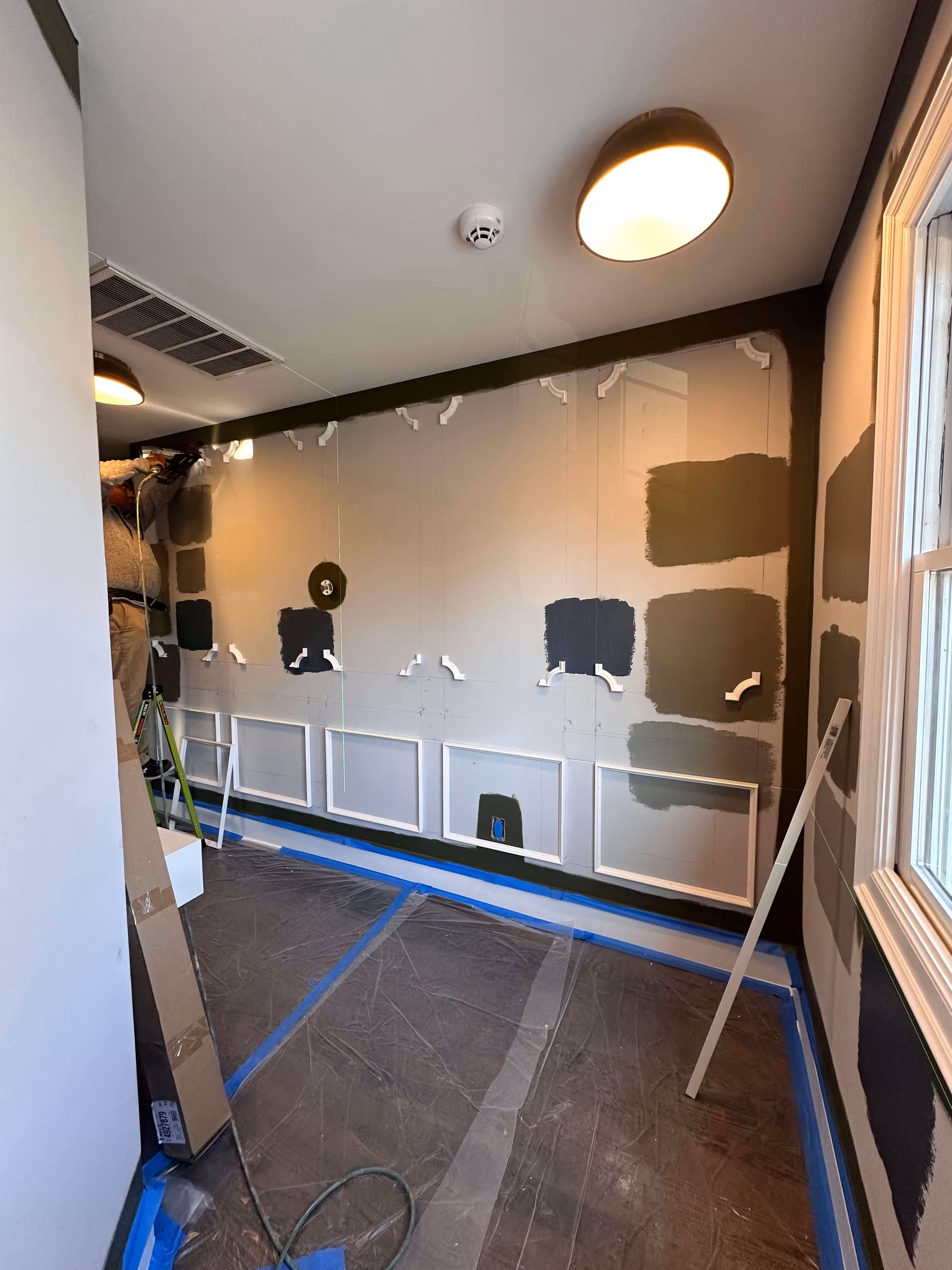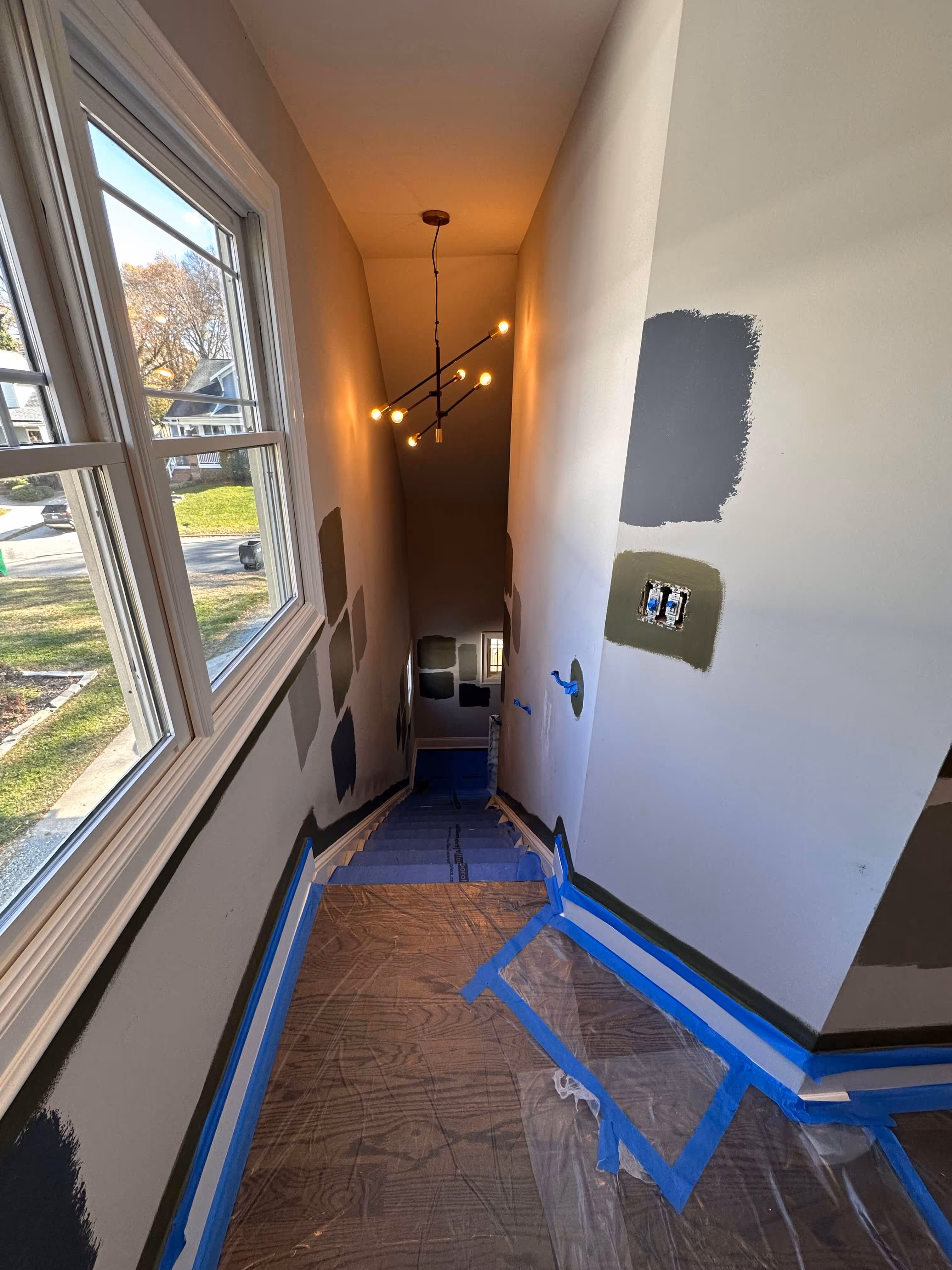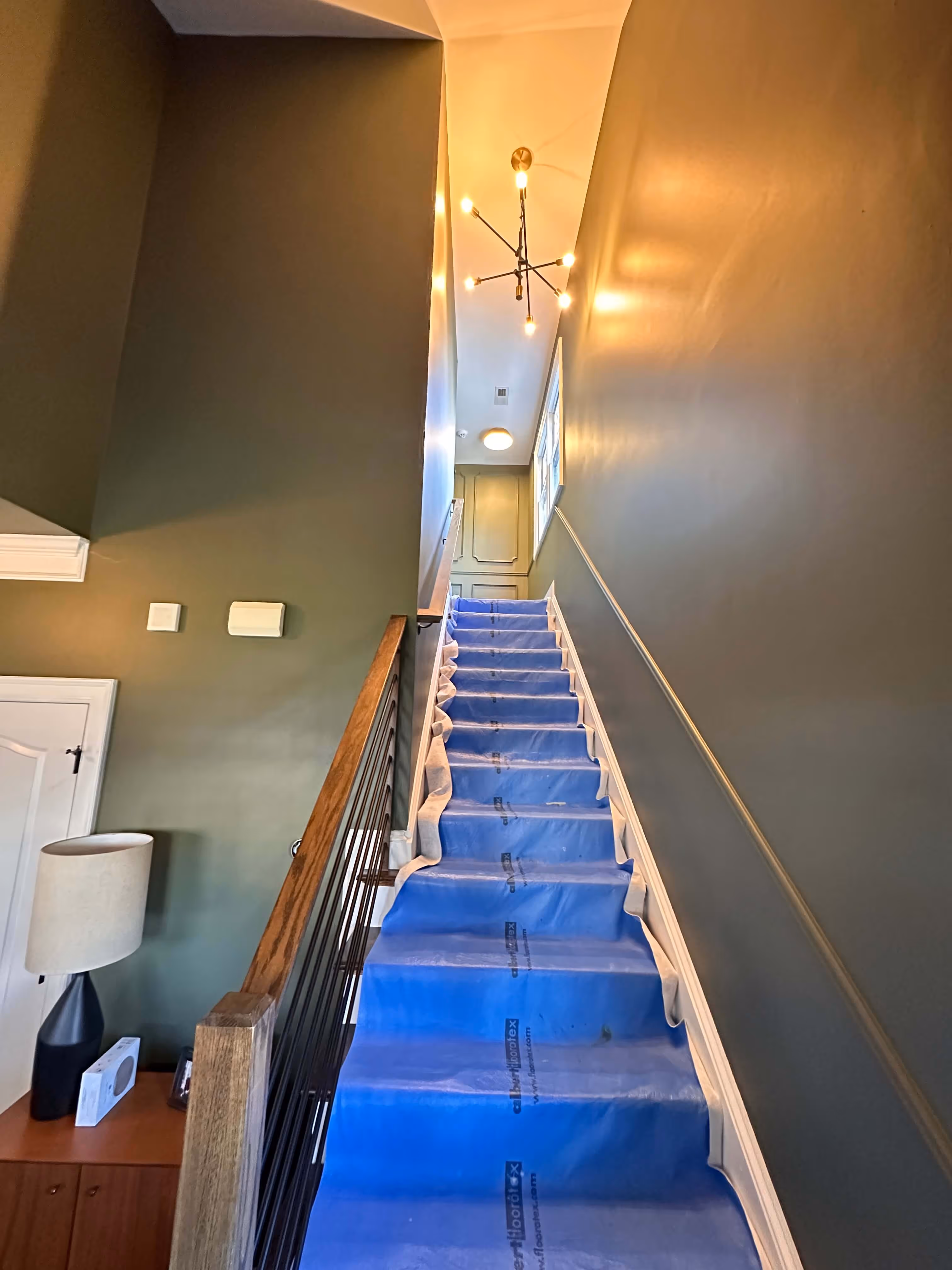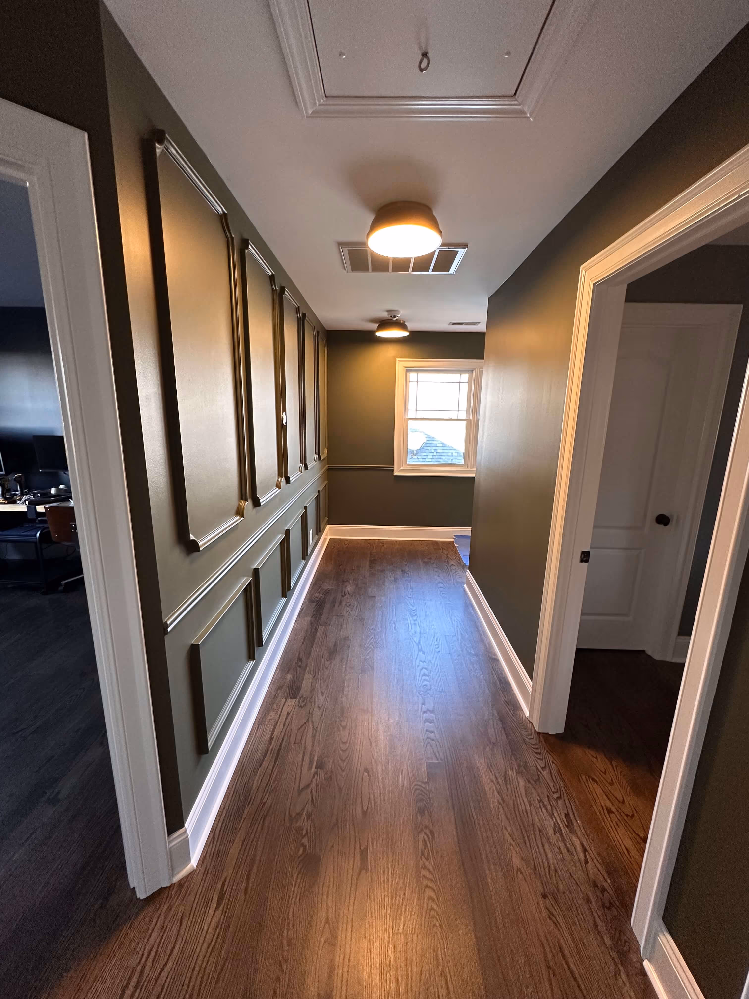 Our clients wanted to add texture and depth to a long hallway and stairwell that previously lacked detail. With our in-house carpentry and painting team, we brought their vision to life using custom trim molding and a refined interior paint application that highlights both craftsmanship and color.